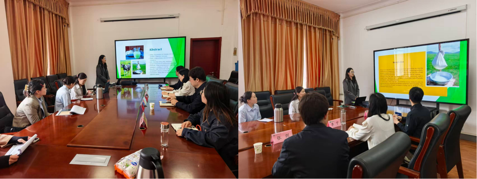 随后,来自蒙古国的5名留学生依次围绕乳品加工、食品工艺现代化改良、功能性食品开发、筛选设备设计及工厂设计等选题进行了汇报。选题紧密结合蒙古国本土资源优势与我国食品学科前沿技术,体现了“一带一路”背景下中蒙农业与食品领域的合作潜力。从选题意义、技术路线、实验设计、可行性等方面逐一提问点评,并就研究方法优化、数据采集规范、文献引用广度等提出具体建议。同时也勉励留学生们认真吸纳修改意见,严把科研诚信关,高质量完成毕业论文与设计。