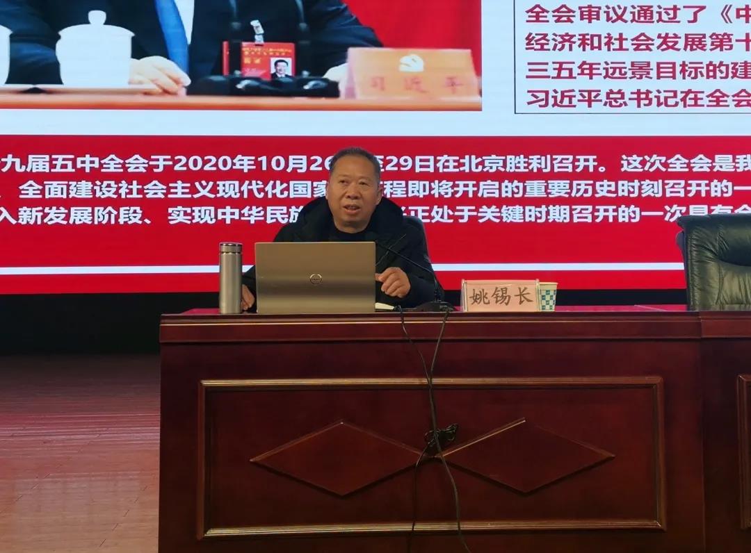 姚锡长教授从党的十九届五中全会的全局性、历史性出发,围绕中国共产党带领全国各族人民在各个历史时期取得的光辉成就,指出要继续抓好、利用好战略机遇,团结一致、砥砺前行。随后,他对党的十九届五中全会精神内涵进行解读,帮助师生准确把握2035年远景目标和“十四五”时期我国发展的指导方针、主要目标、重点任务,使师生深刻认识我国进入新发展阶段的重大意义、有利条件和重要特征。他强调,红桃视频