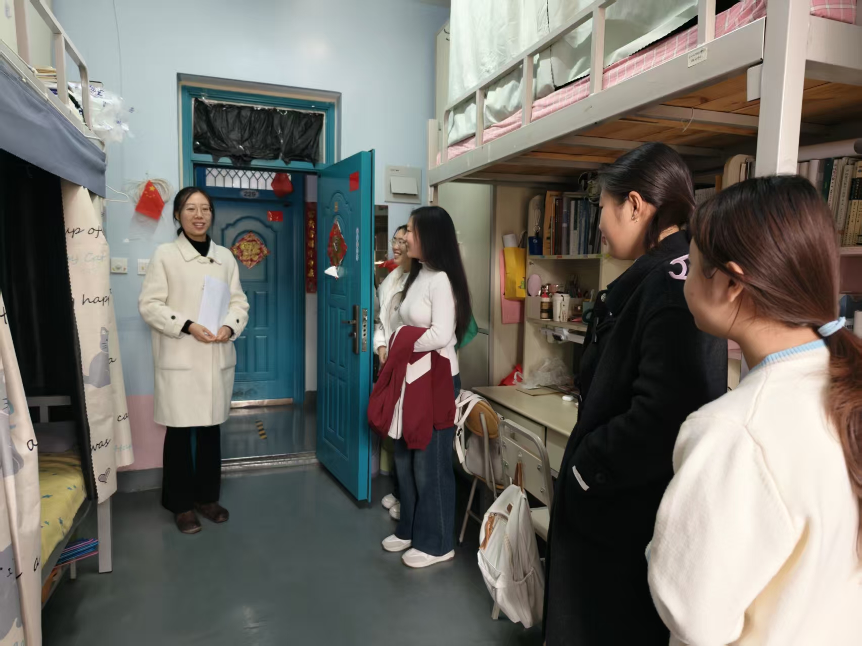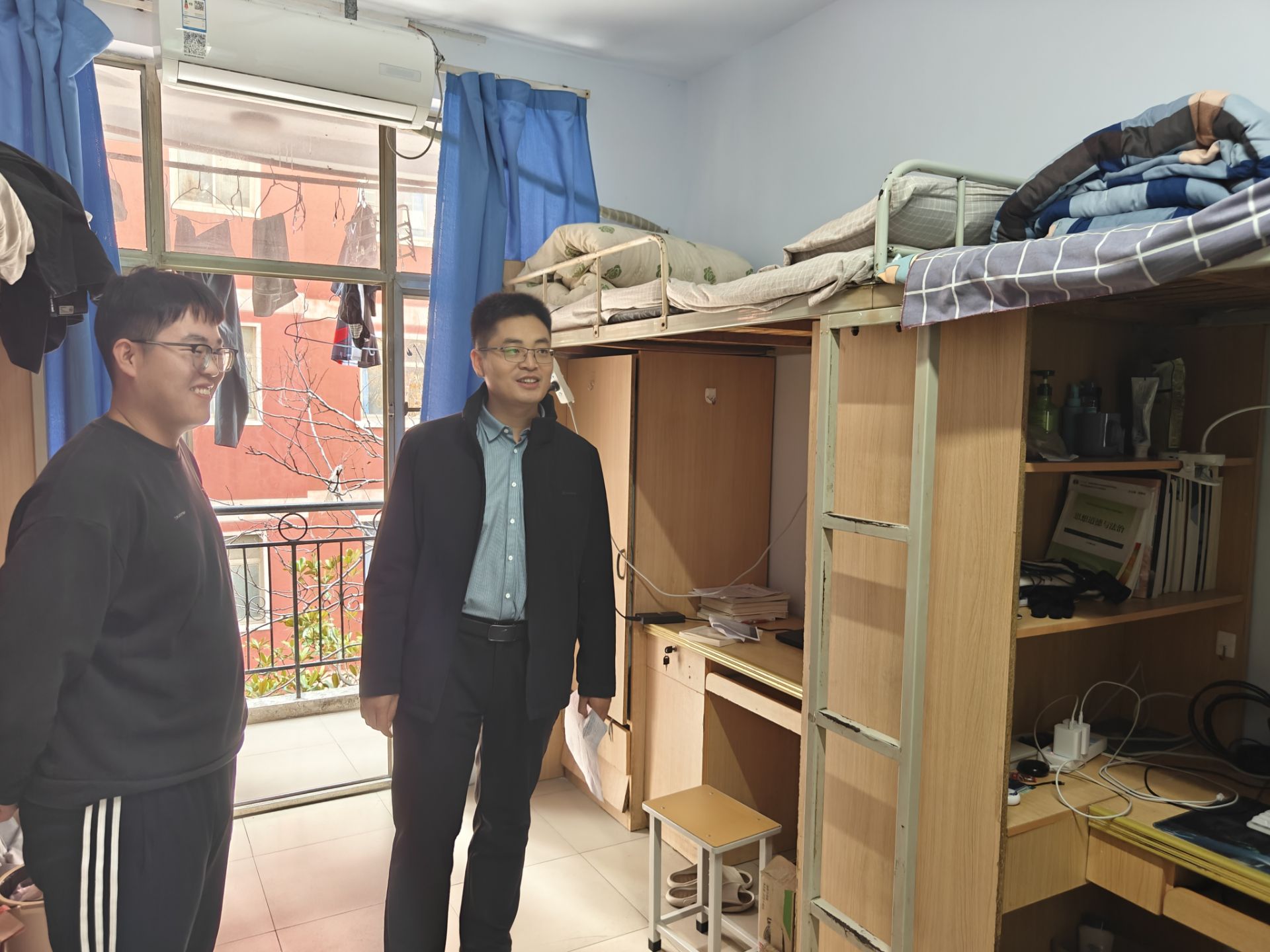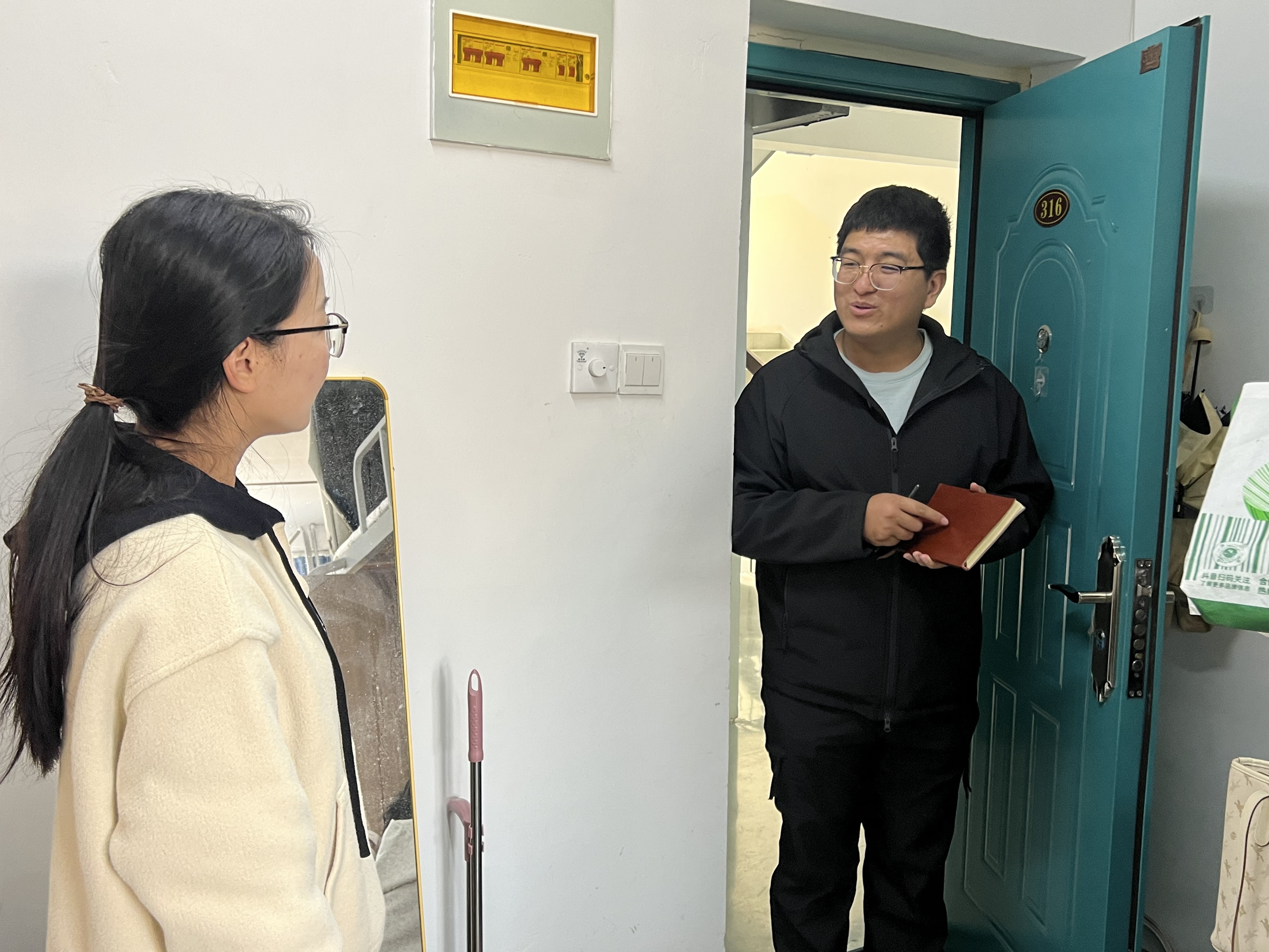 走访中,老师们秉持“细致入微”原则,逐一排查室内地面整洁、物品摆放、门外杂物清理及通风效果等细节,全力营造舒适有序的居住环境。针对用电安全这一重点,老师们核查插线板使用规范,严查大功率电器违规使用行为,反复叮嘱同学们勿私拉乱接电线、离宿及时断电,筑牢安全防线。此外,老师们与同学们亲切攀谈,询问学习进度、课程适应情况及生活难题,耐心倾听诉求并给出实用建议,用暖心交流为同学们排忧解难,让同学们深切感受到红桃视频