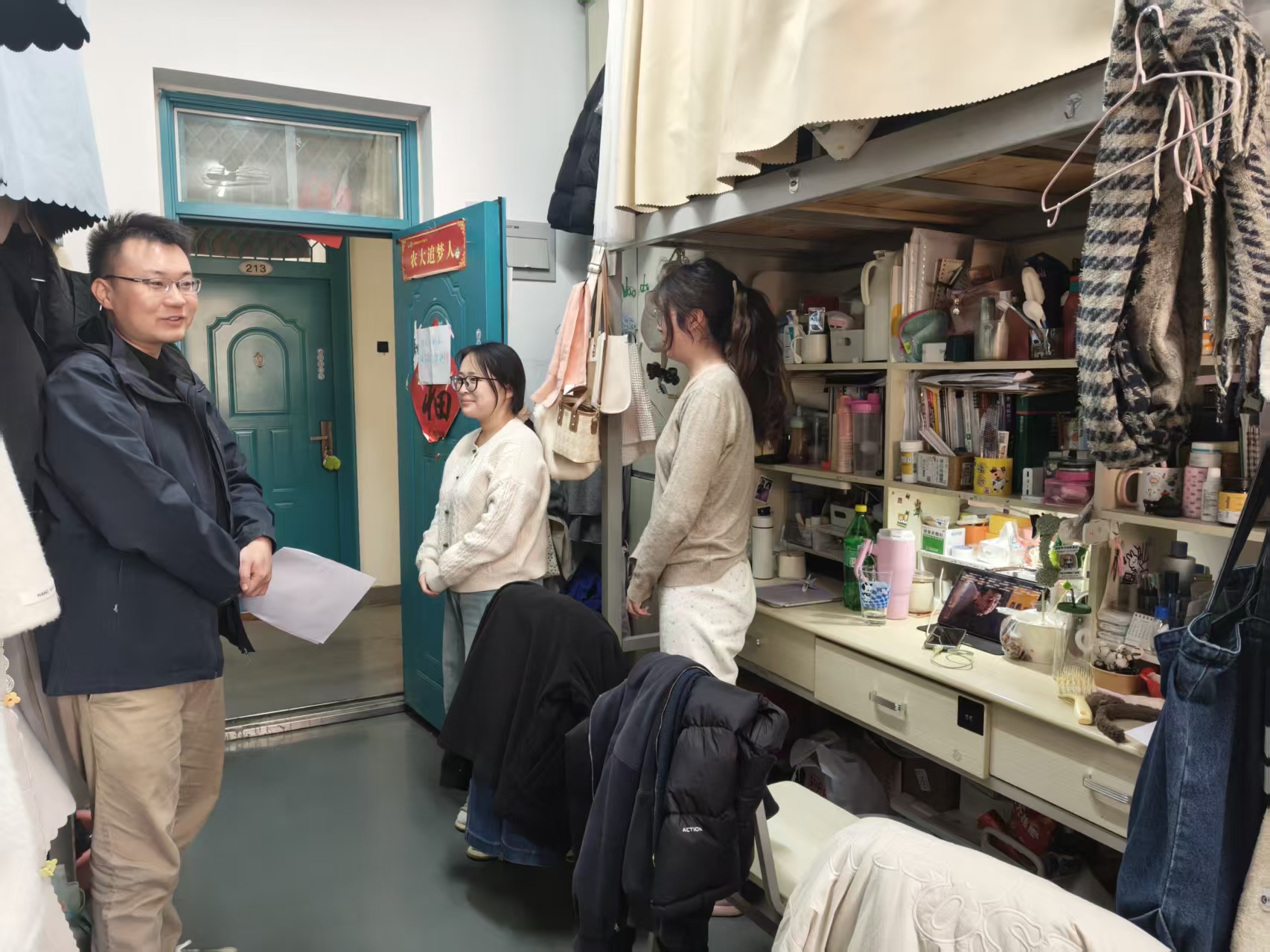 (通讯员 史静薇)立冬已至,寒意渐浓。为深入了解同学们的生活状态,倾听大家的心声诉求,11月13日,院团委书记路平、党委组织员陈翔、团委副书记张金龙、辅导员喻颢如、张泽群深入学生宿舍,与同学们面对面交流,用暖心话语搭建起师生沟通的桥梁。