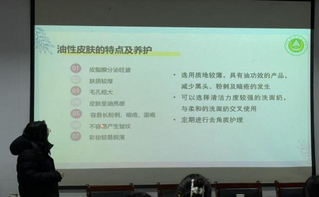 “科学护肤与理性美妆”主题讲座由繁花古风社承办,特邀赵培均老师主讲。赵老师结合大学生肤质特点与日常护肤习惯,系统讲解肤质判断、基础护肤步骤及化妆品成分识别等内容,提醒同学们警惕“三无产品”,理性消费、科学护肤。并寄语大家:真正的美源于健康的生活方式与内在的自信,要学会拒绝容貌焦虑,做阳光自信的新时代青年。