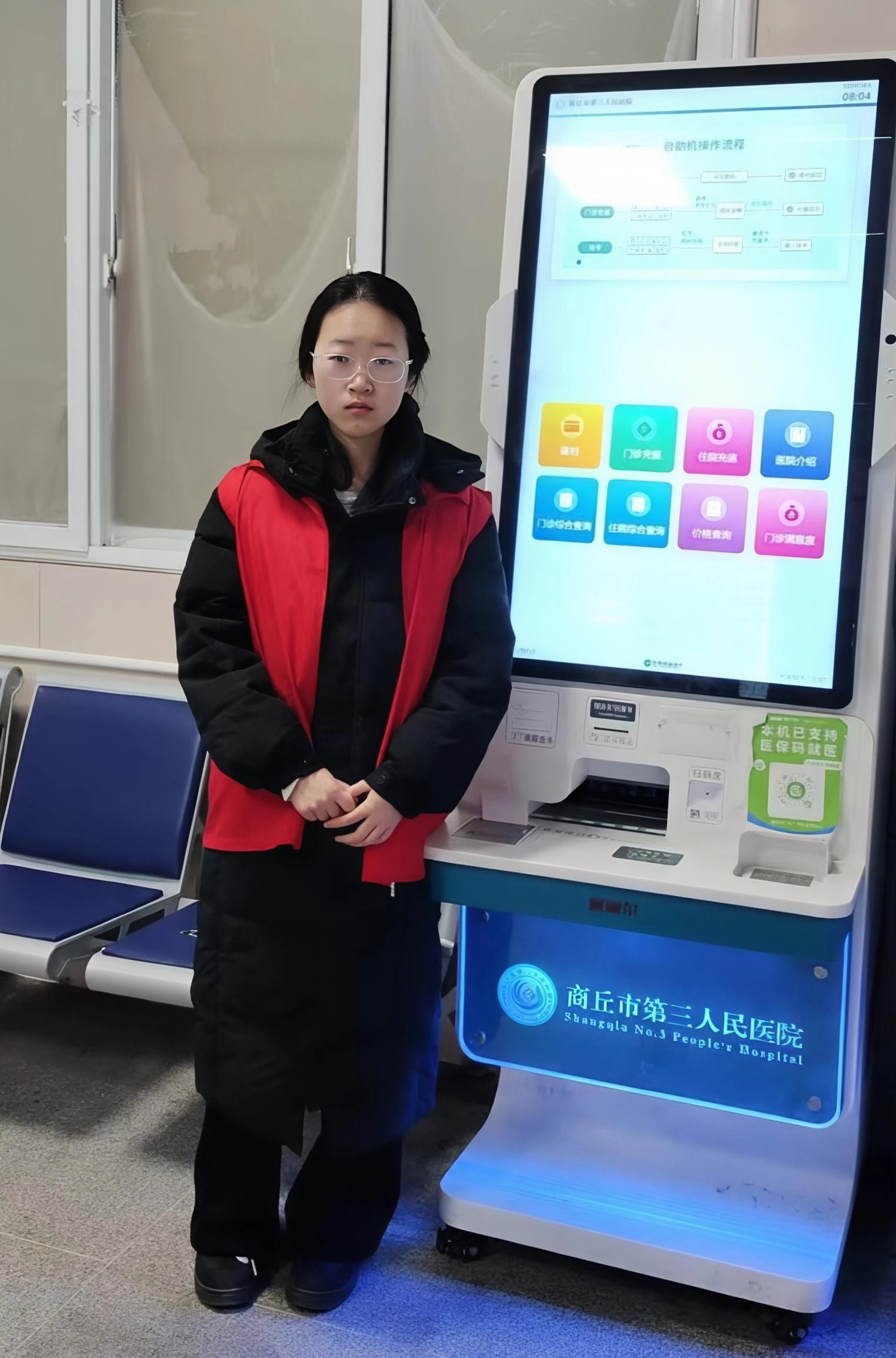 实践初期,王欣怡主要负责协助患者操作自助设备,完成挂号、缴费及报告打印等流程。面对陌生界面与患者急切的目光,她坦言起初倍感压力,但通过反复练习与主动请教,迅速掌握操作要领,逐渐从容应对各类需求。