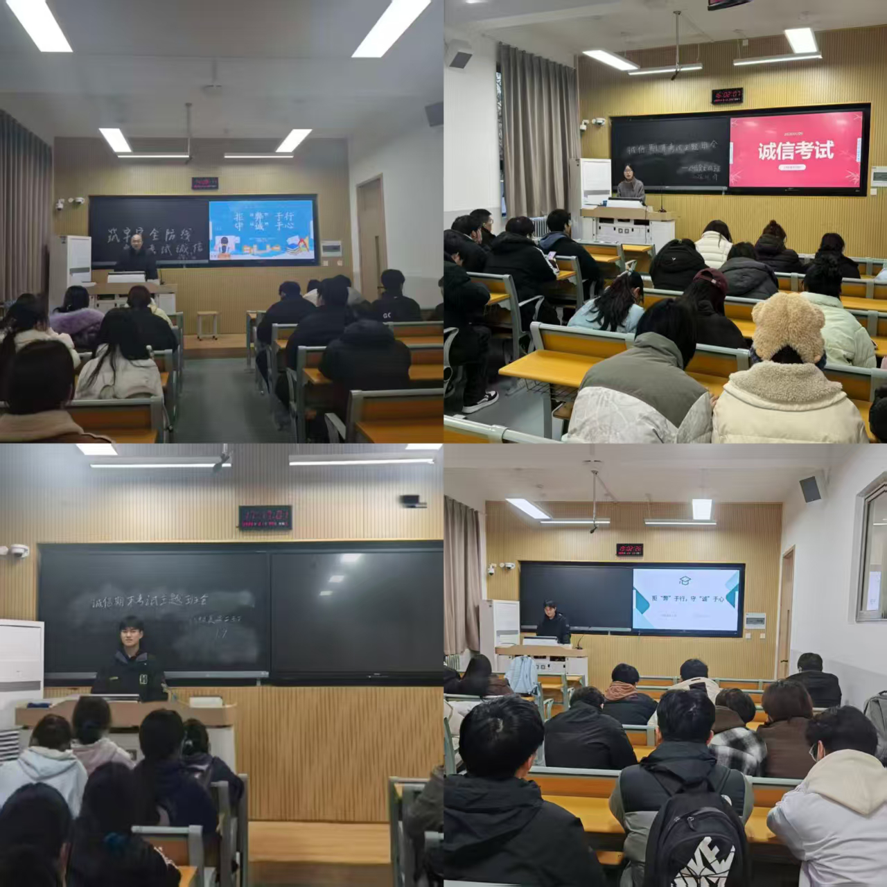 以管理严学风。严格落实课堂考勤制度,建立院领导、班主任、辅导员三级听课机制,多方联动推进课堂巡查常态化。通过学委反馈、随机抽查等多种形式,学生迟到、旷课现象明显减少,课堂纪律持续向好。开展学生手册考试、期中考试,学生学习积极性、自主性大幅度提高。考前诚信教育实现全覆盖,诚信应考意识深入人心。