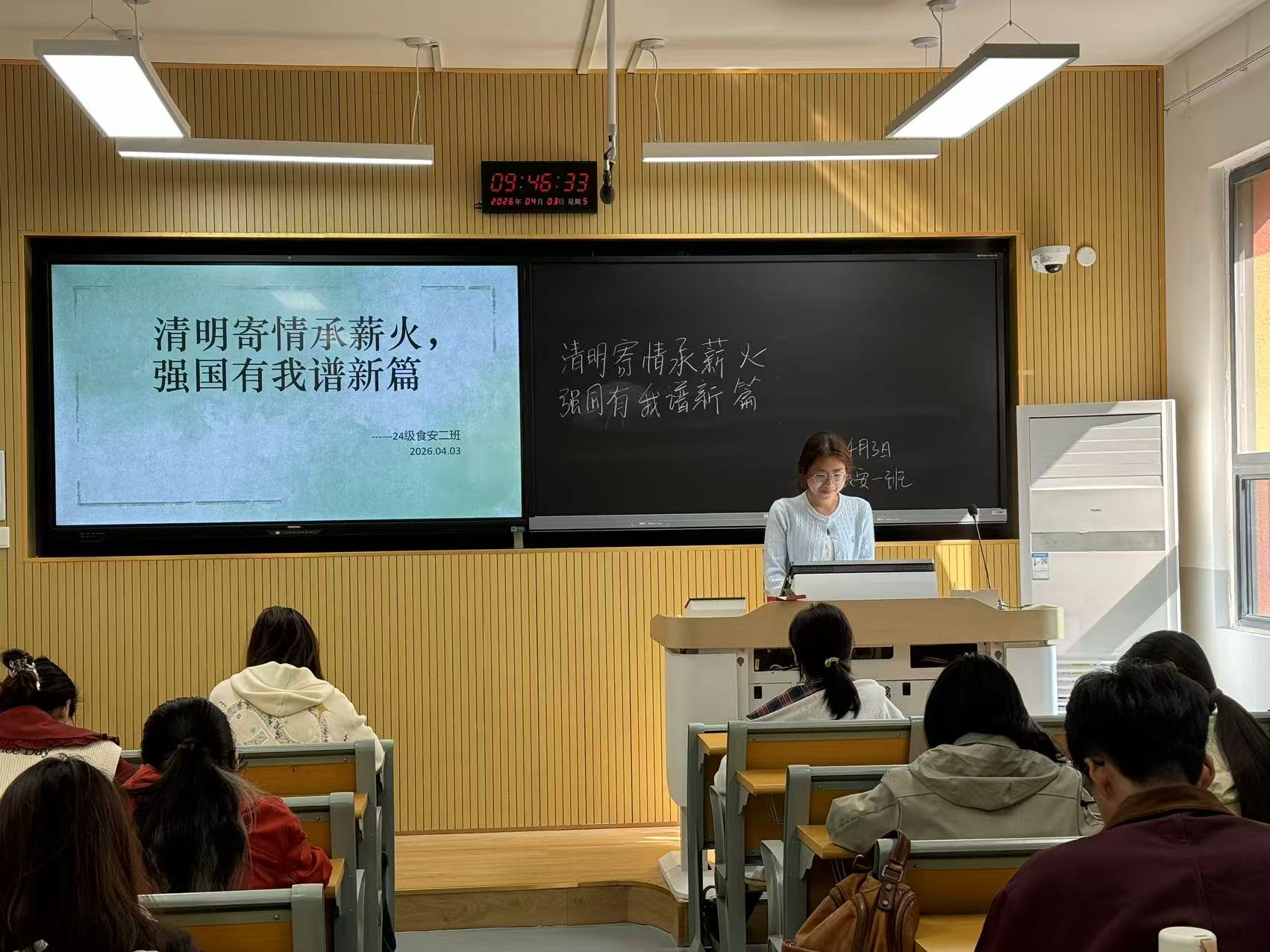 组织各学生班开展“清明寄情承薪火,强国有我谱新篇”主题班会。