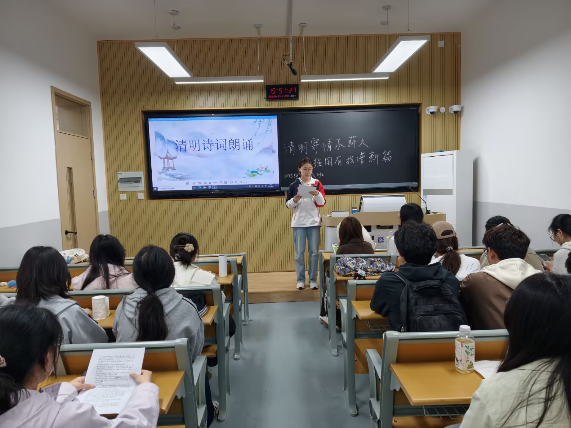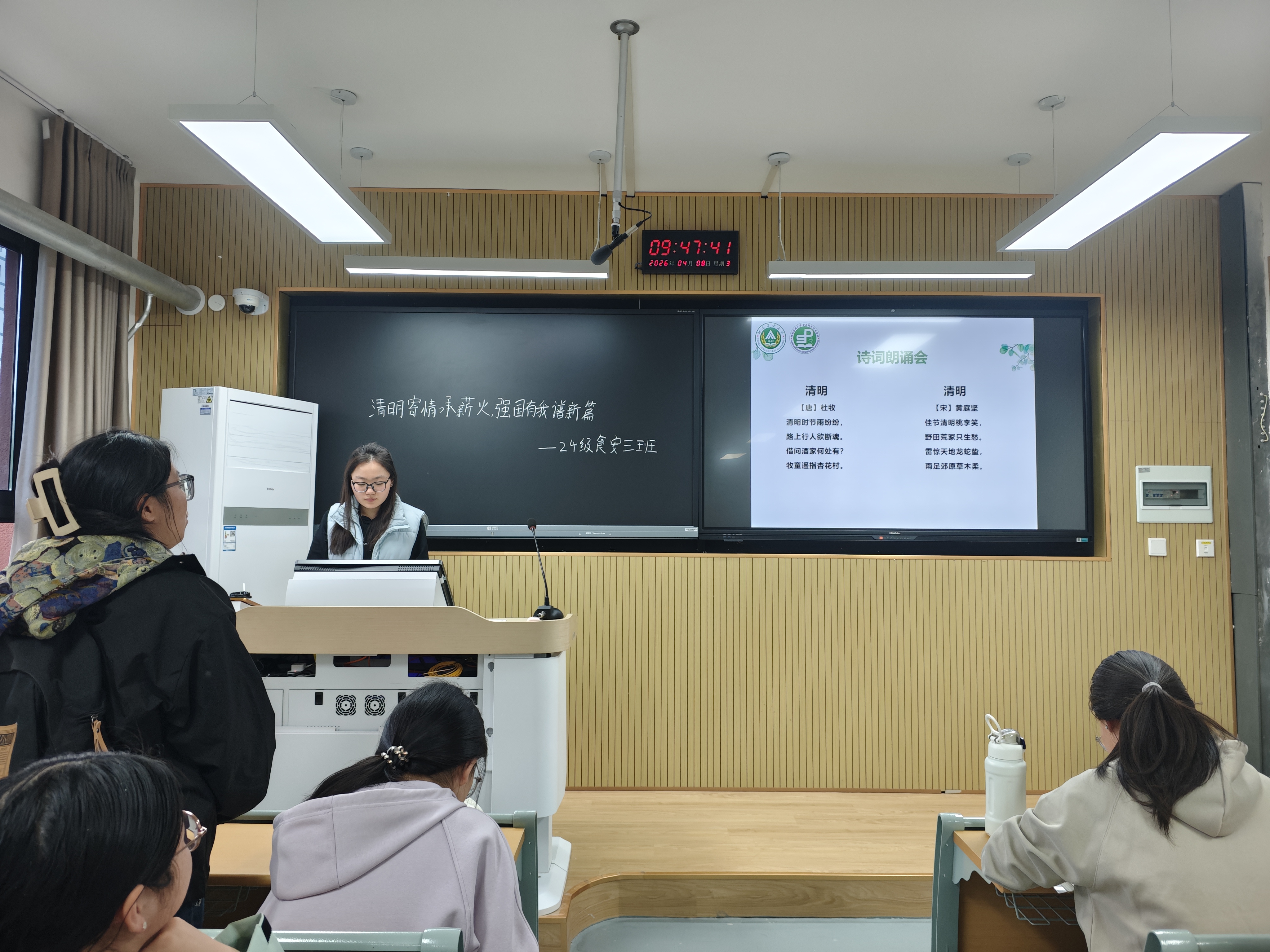 班会期间,各班级通过专题学习、诗词朗诵、纪录片观赏、故事分享等形式,组织学习了清明时节的农耕文化内涵与传统习俗。同学们在诗词诵读中品味清明意蕴,在影像观摩中了解节日发展脉络,在家国故事分享中感悟英烈精神,进一步深化了对中华优秀传统文化的理解与认同。