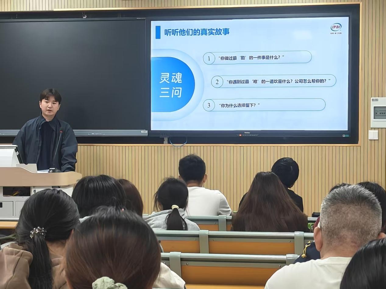 随后,苏佳豪结合自身在伊利的工作经历,从岗位日常、成长路径、职场心得等方面分享了真实的一线经验,并针对同学们关心的校招备考、职业规划等问题进行耐心解答,帮助大家更直观地了解企业的工作节奏与发展前景。