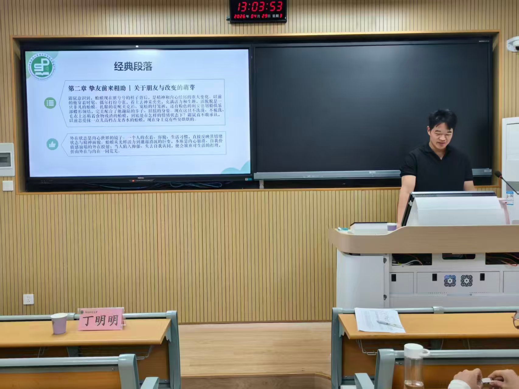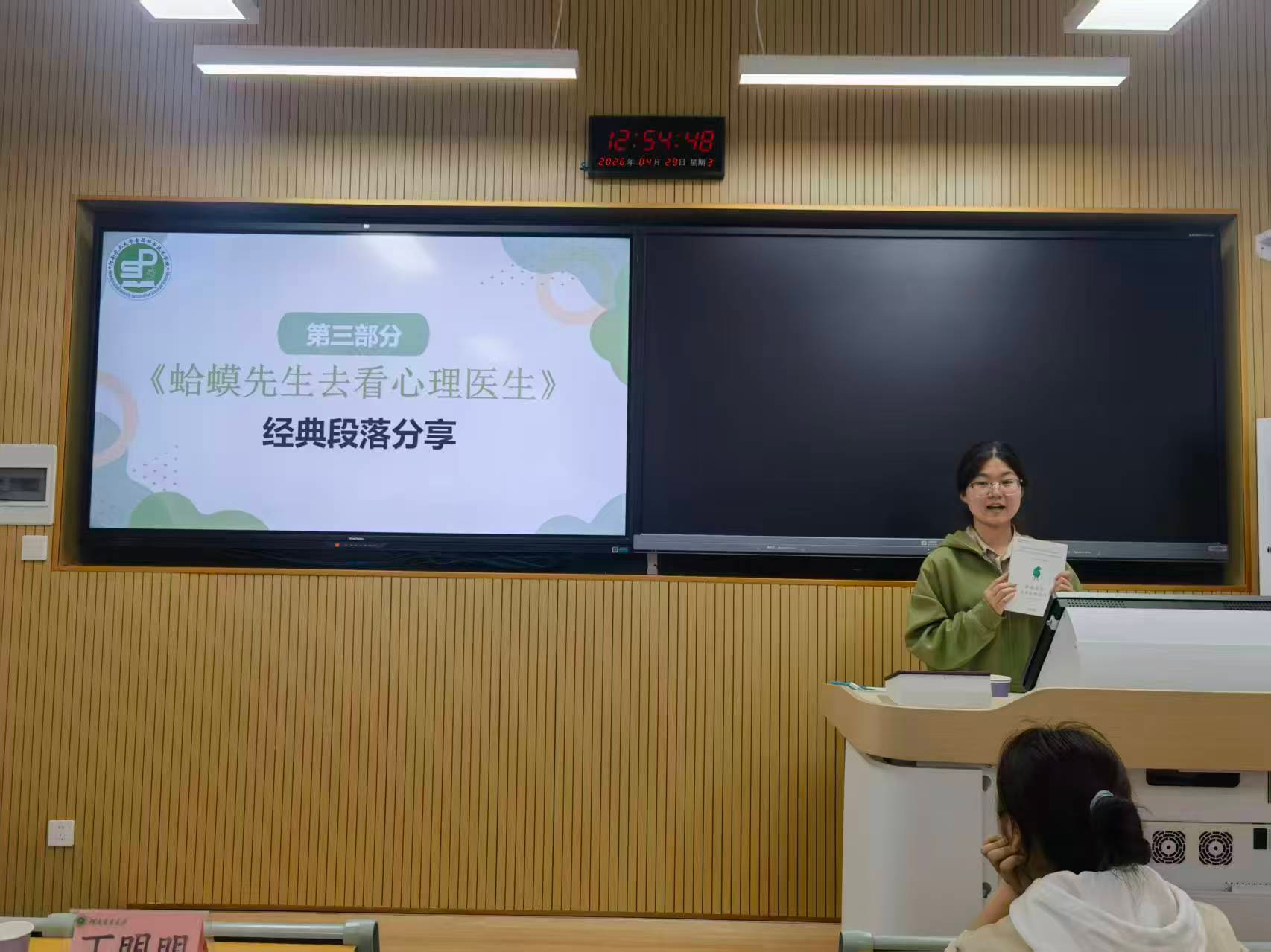 读书分享环节,大家共读《蛤蟆先生去看心理医生》经典段落,多名心理委员结合自身阅读体会与日常工作感悟进行交流,拓宽了心理知识视野,深化了对朋辈帮扶工作的认识。